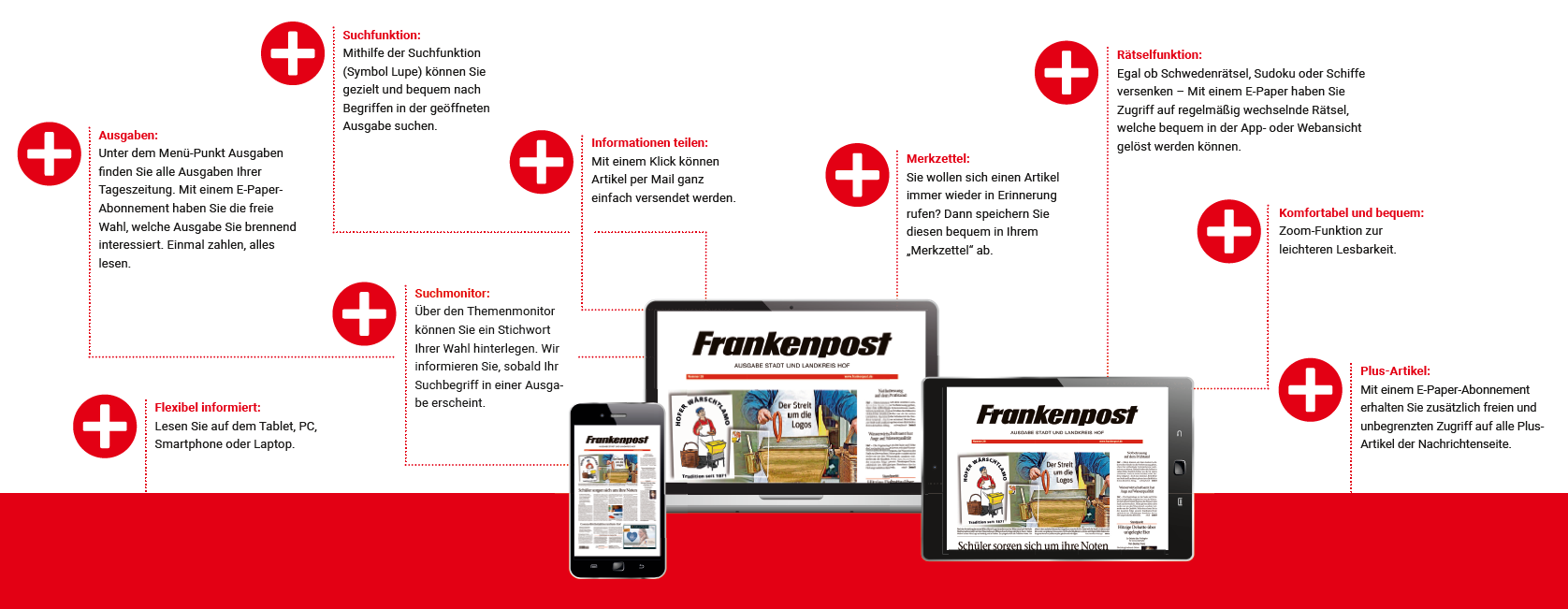 Lernen Sie die digitale Ausgabe der Frankenpost kennen und sichern Sie sich jetzt noch mehr Lesefreude mit unserem Geschenk an Sie. Lesen Sie das E-Paper (alle regionalen Ausgaben) und alle Premium-Artikel “Fp+” 30 Tage GRATIS – das Abo endet automatisch.